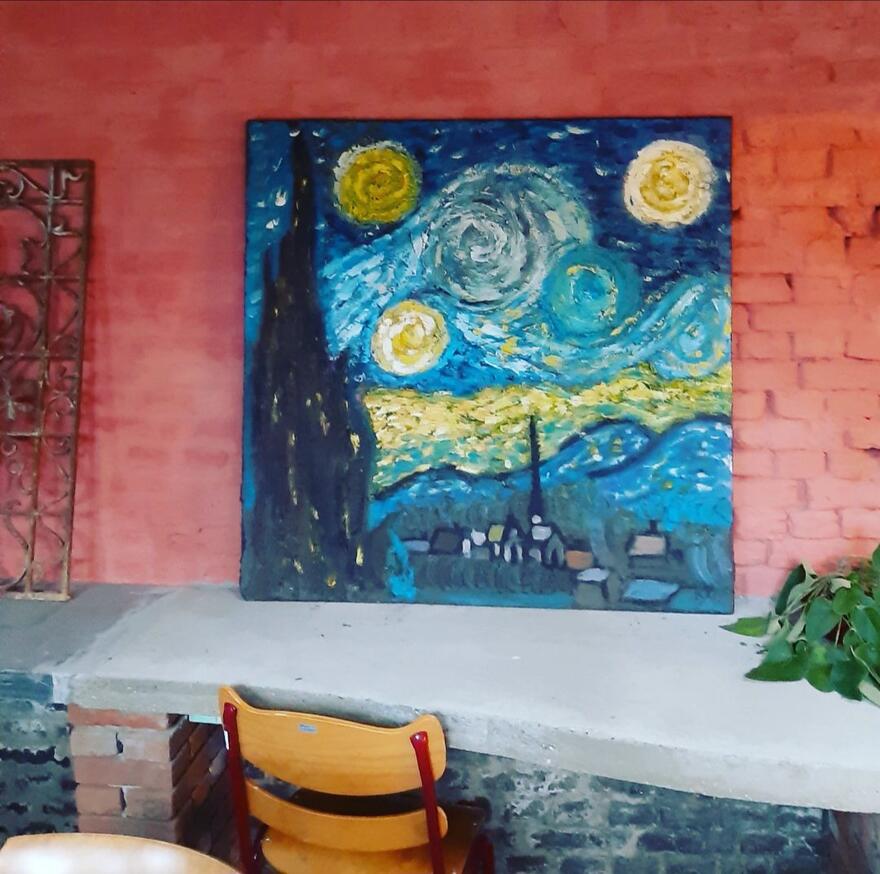 Werk 'Van Gogh', acrylverf, lijm en zand