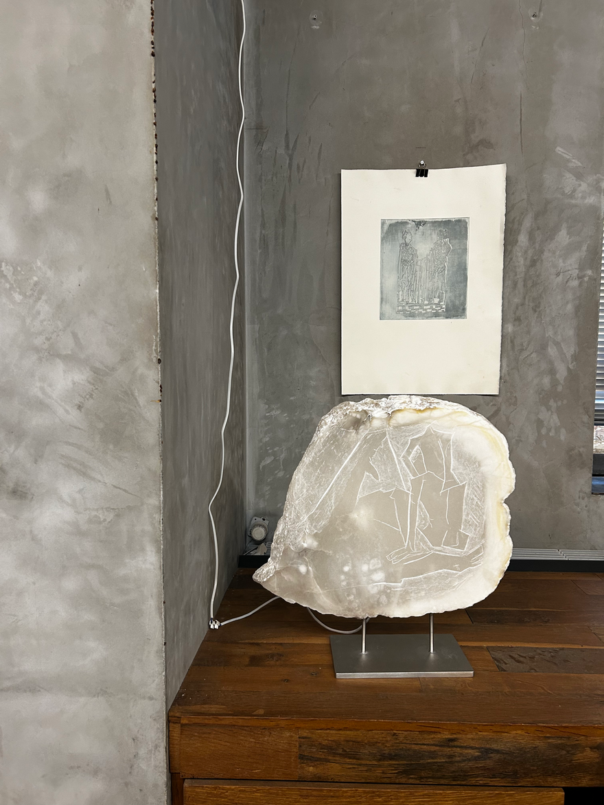 In mijn werk primeert er een terugkerende specifieke schriftuur en lijnvoering. Het is de rode draad doorheen mijn werk. Zowel in tekeningen, beeldhouwwerken en schilderijen is dit duidelijk zichtbaar.