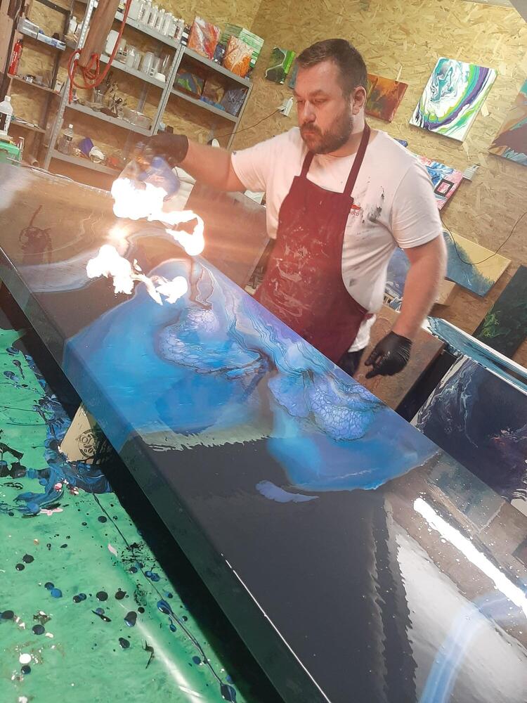 Creëren met zijn handen begon door zich uit te leven in het bewerken van hout. Tegenwoordig is het echter vooral de acryl die hem helpt om zijn gedachten uit te beelden.
