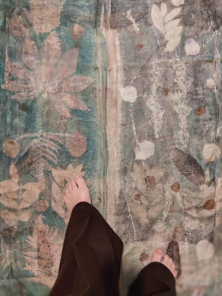 JAYLOO is een eco-textielatelier, waar de natuur niet alleen inspiratiebron is, maar ook actieve medemaker. De natuur op doek en leder printen is het doel om achteraf in vorm te gieten. Precies daar begint het verhaal: een traag, aandachtig proces waarin bladeren, bloemen, schors en vezels hun eigen taal spreken. Elk stuk ontstaat vanuit een diepe verbondenheid met het ritme van de aarde, met respect voor grondstoffen en met een grote liefde voor experiment. Jacky Lynen en Joris Brepoels werken in hun atelier met plantaardige afdruktechnieken en zelfgemaakte pigmenten. Onderzoeken en verwonderen en onthaasten met vezels, mordant, pH als stemvork, warmte en druk als activatie en tijd als stille alchemist. Het is een zoektocht naar balans tussen controle en loslaten, tussen ambacht en natuurkracht. De materialen reageren op elkaar, veranderen en vormen zo unieke patronen die nooit reproduceerbaar zijn.