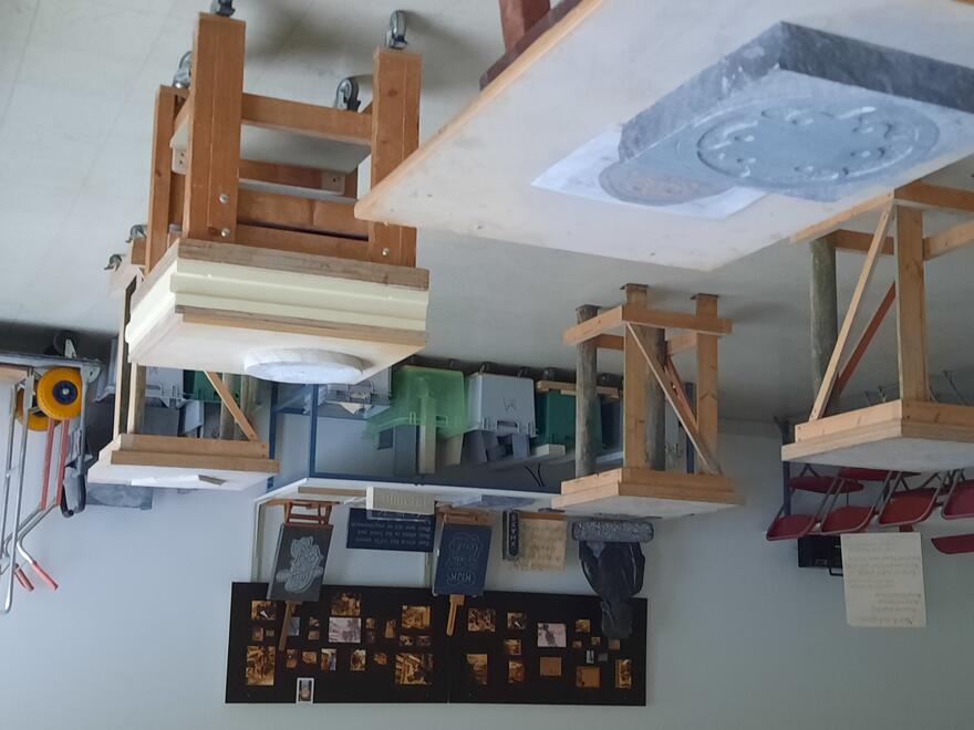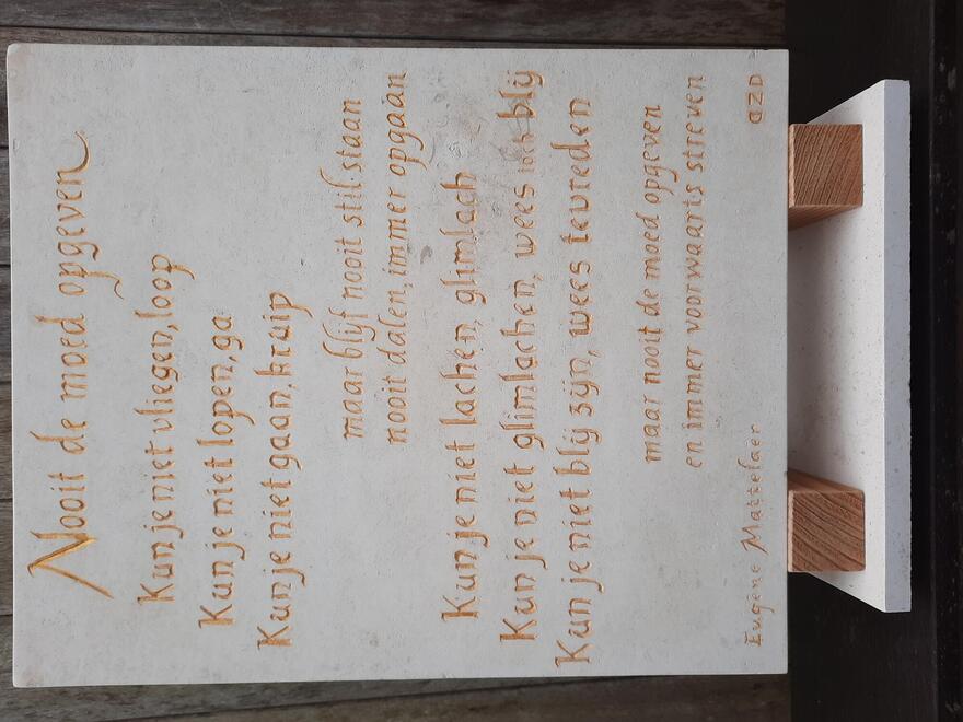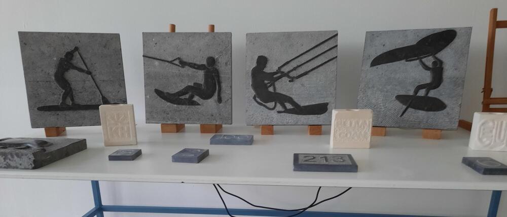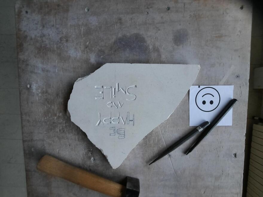 De deelnemende kunstenaars zijn: Chris, Brigitte en Danny. Drie hobby-kunstenaars die wekelijks samenkomen om hun creativiteit uit te leven met het kappen van teksten en/of bas-reliëfs in gerecycleerde stenen afkomstig van afbraakwerken, resten enz.. Het betreft hoofdzakelijk blauwe hardsteen, witsteen, marmers en dergelijke.