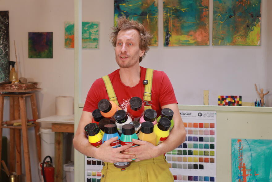 Patrick maakt kleurrijk werk met acryl en epoxy.