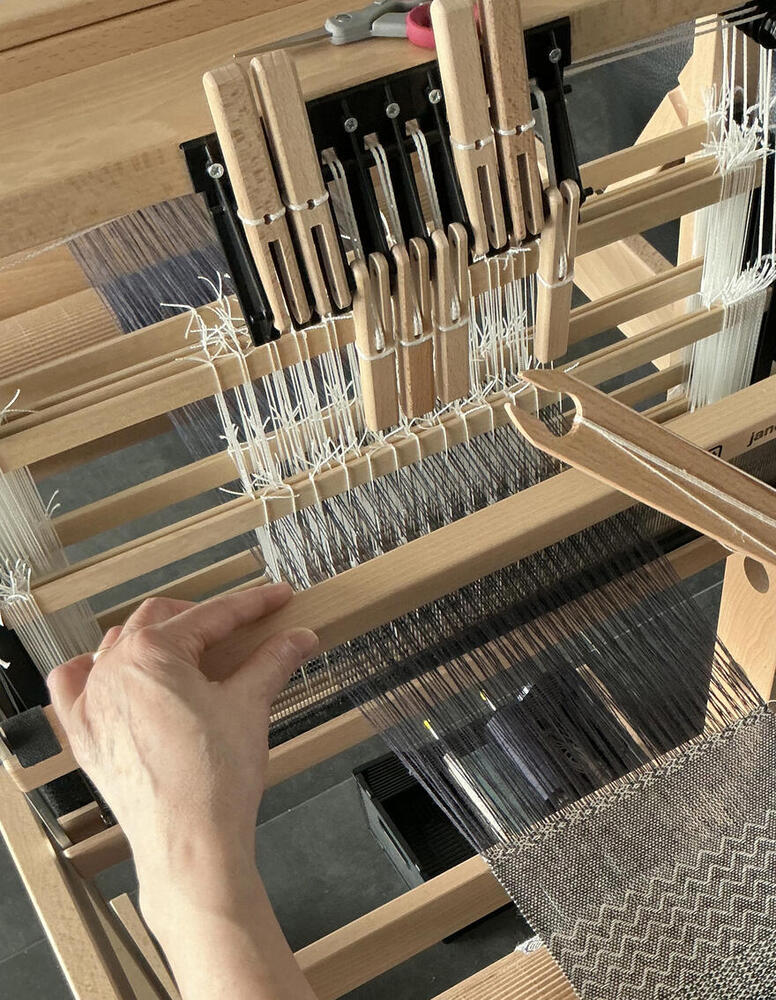 Rozemarijn benadert textiel als beeld, met draad en kleur als picturale middelen.