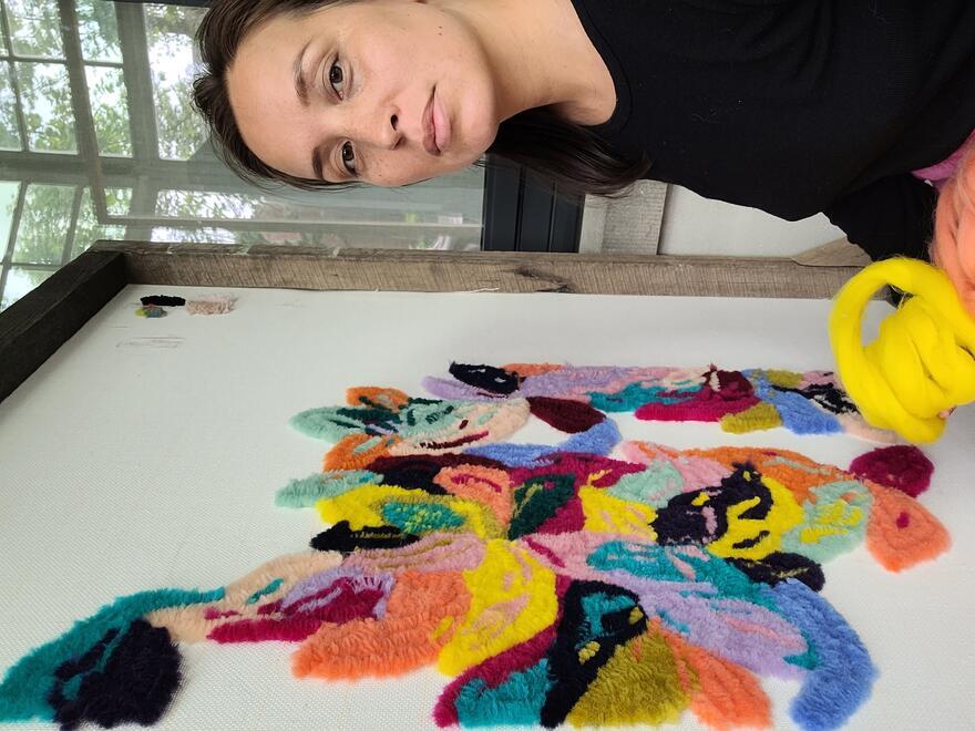 Fleur Julliat maakt unieke handwerken die schilderkunst en textiele kunst combineren. Ze werkt met technieken als tufting en weven. Haar werk is ontworpen om zowel de zintuigen als de ziel te raken.